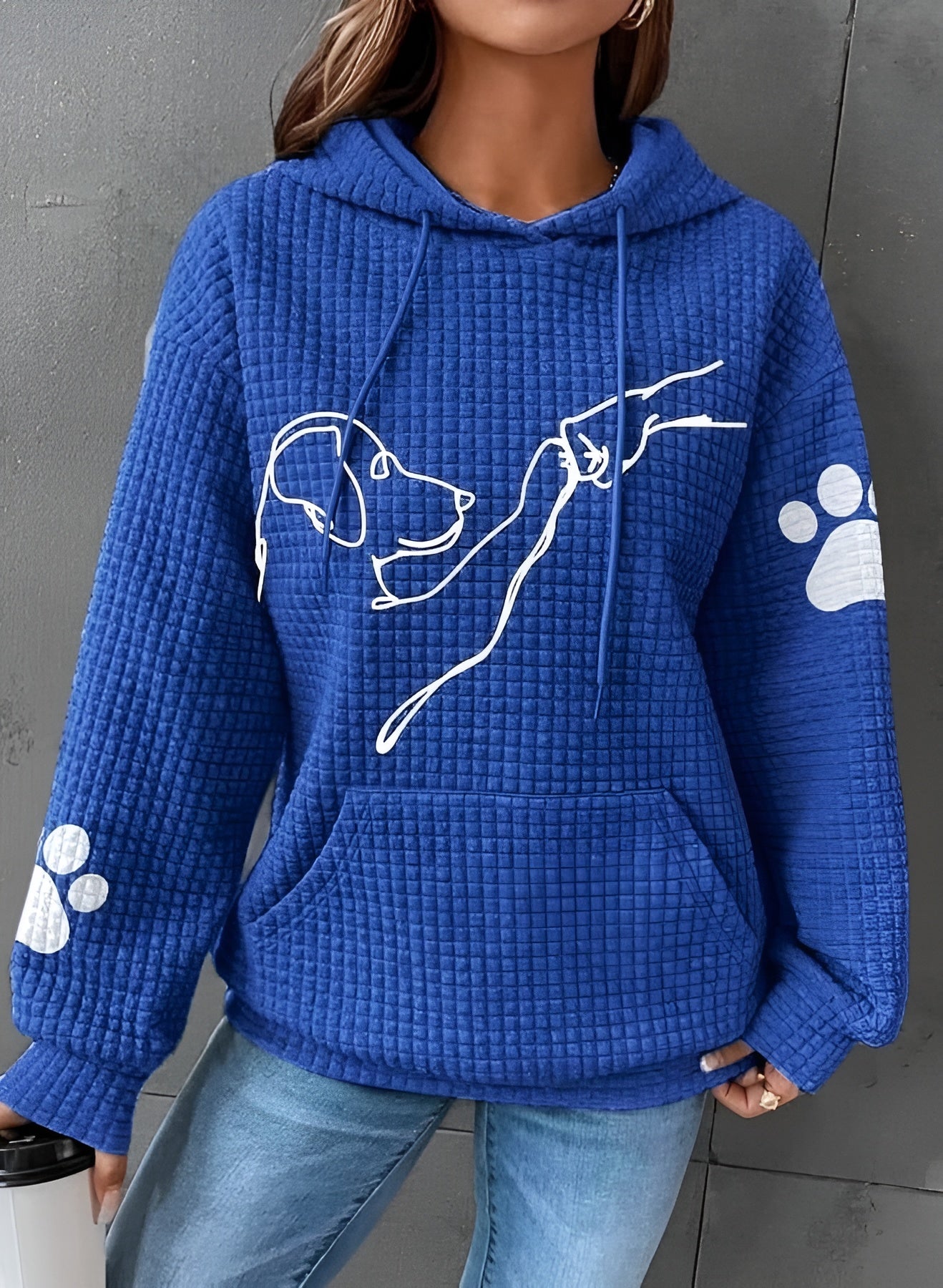 Stel jou dit voor: Jy lyk koel, jy loop met 'n warm koffie in jou hand en jou hond draf gelukkig verby jou. Jy dra Betsy™ Waffle Trui – sag, stylvol en met liefde van nuuts af gemaak. Mense glimlag wanneer hulle daardie pootafdruk op jou sien. Jy voel nie net warm nie, maar jy voel ook verbind met jou harige maat.