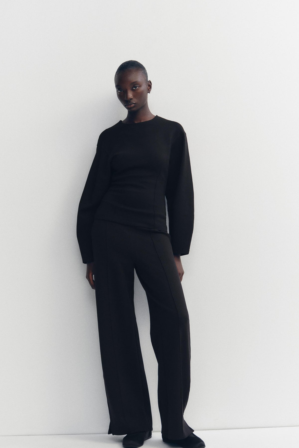 Perfekte pasvorm: Los bo- en wye broek platter en bied elegansie.