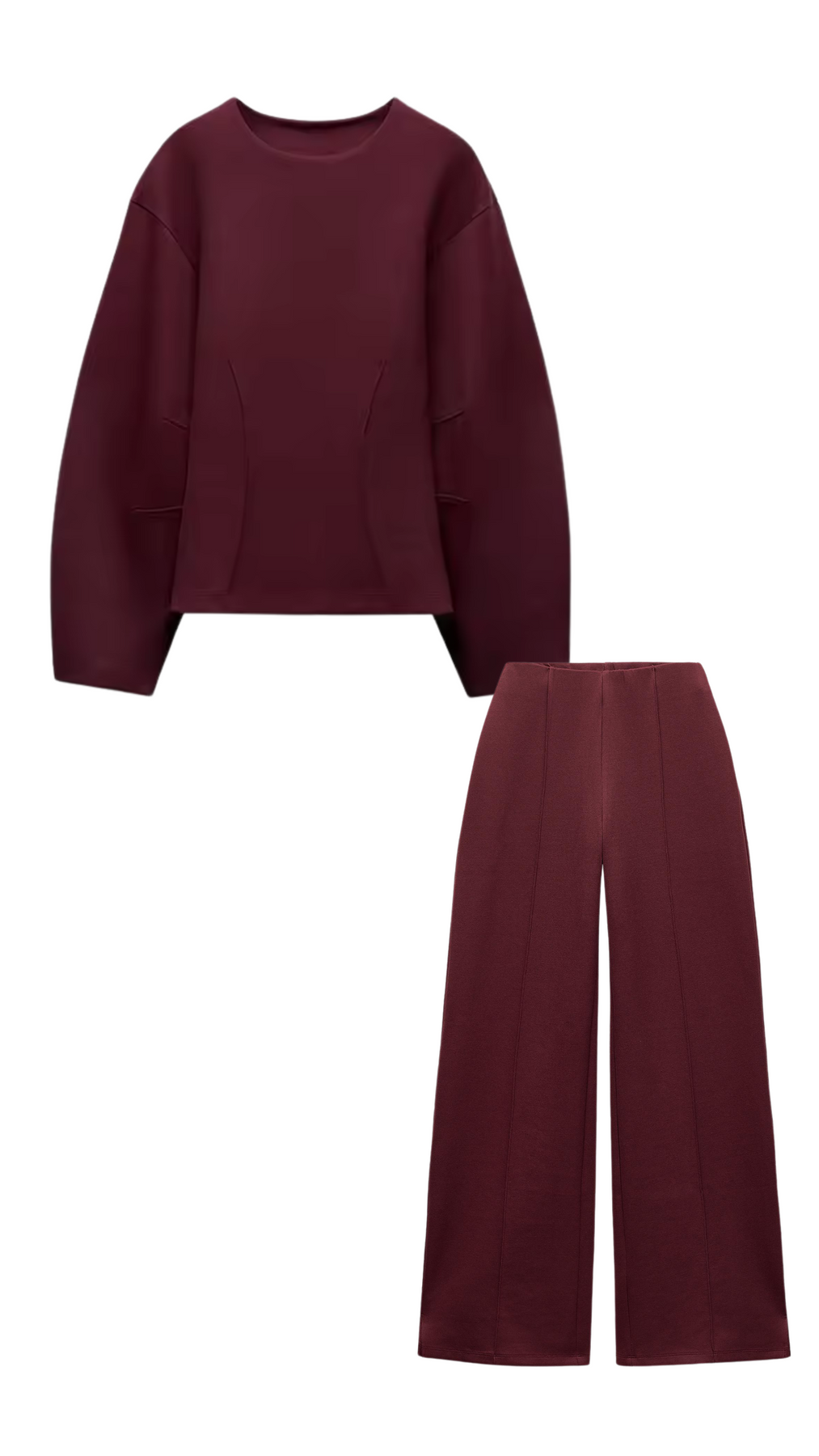 Gesofistikeerde tweedelige stel beliggaam minimalisme en gemak vir moeiteloos stylvolle, sjiek voorkoms.